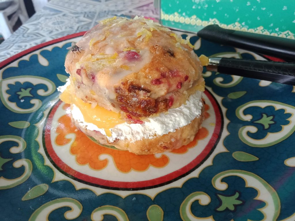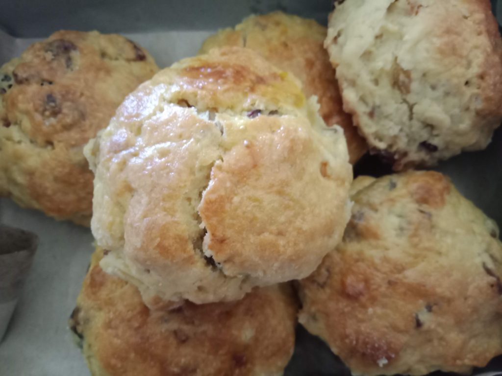 冷えてしまったスコーンは軽くトーストしてから家にあるジャムとホイップを挟むもよし。